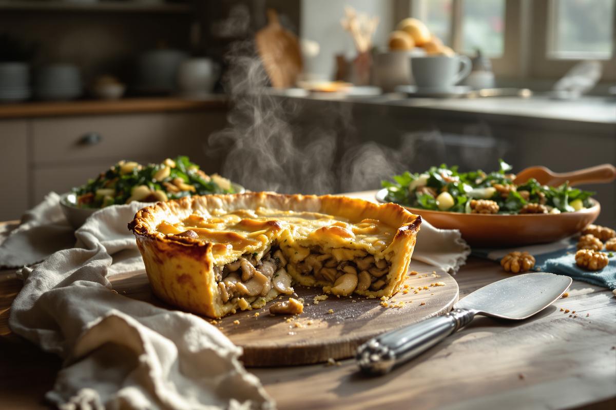 Lorsqu’il fait gris et que le vent souffle dans les feuilles mortes, rien ne vaut une part de tourte chaude et généreuse pour ramener le sourire et la chaleur. Et si cette tourte était aux champignons ? Onctueuse, croustillante, parfumée… Une seule bouchée suffit pour tout oublier. Découvrons ensemble cette recette automnale aussi simple que réconfortante.